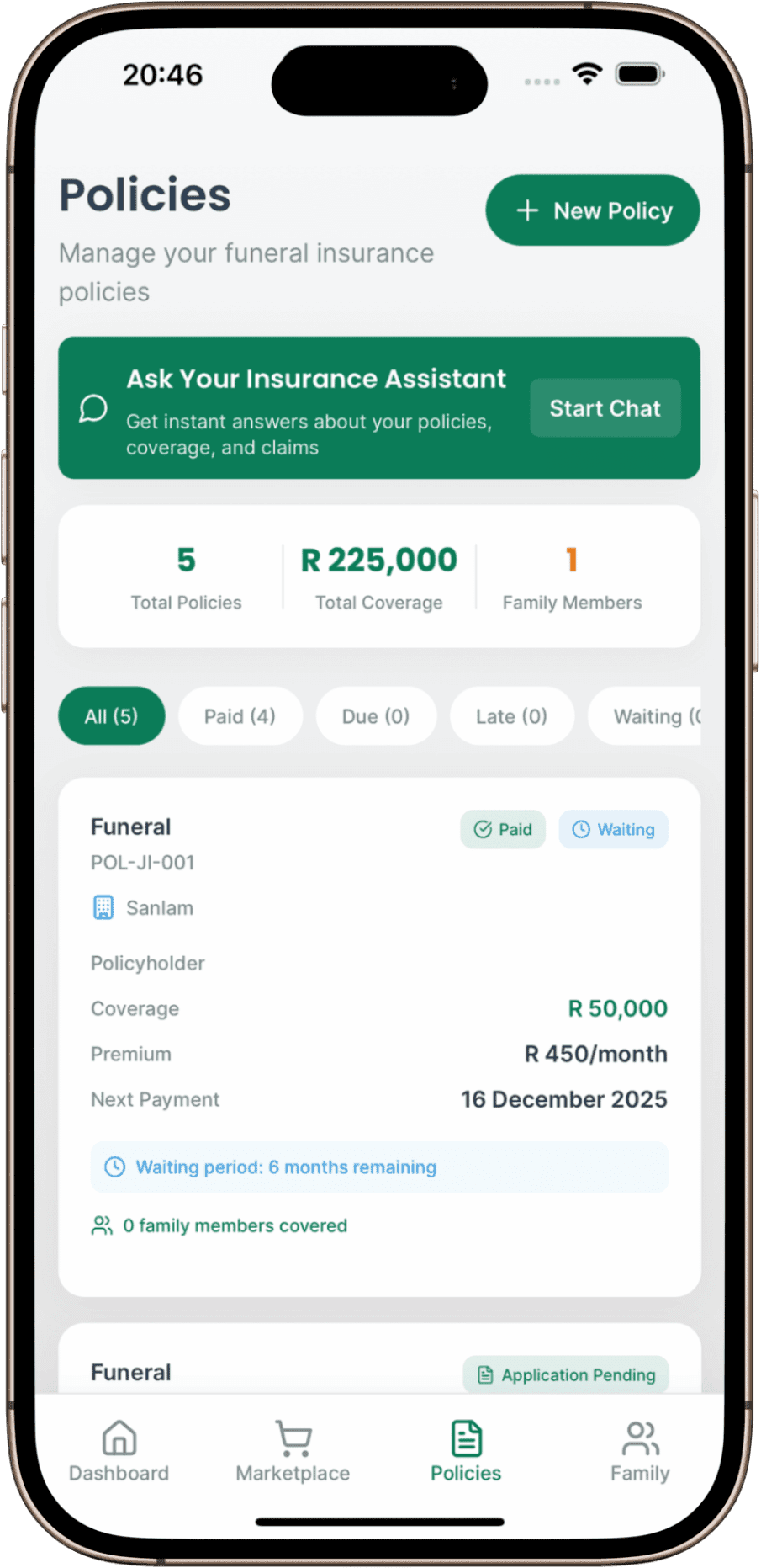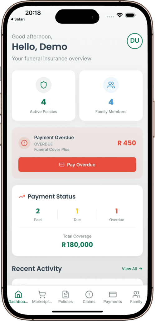 Track all your funeral policies in one centralized dashboard. Get automated alerts for upcoming payments, policy renewals, and important dates. See your total coverage, active policies, and payment status at a glance. Never miss a premium payment again.